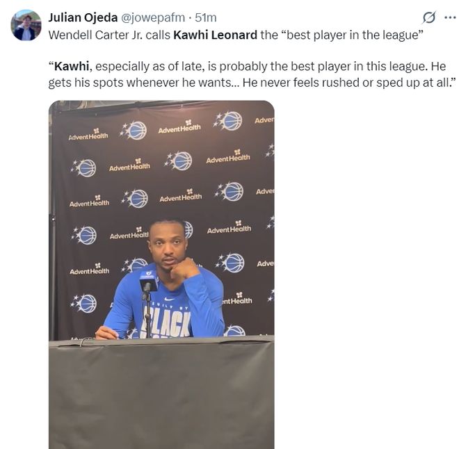 賽后小卡特在接受采訪時談到卡哇伊:他如今就是聯(lián)盟最出色的球員之一。他總能在球隊需要他時扛起球隊,他從不緊張也不慌亂。