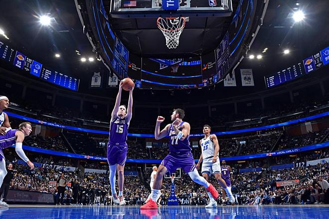 本場比賽中,湖人的先發后場大將奧斯汀-里夫斯(Austin Reaves)的表現還是相當不錯的。里夫斯全場出場40分04秒,投籃20中10,三分線外8中2,罰球4中4,得到了26分7籃板5助攻2搶斷1蓋帽的數據,還有3次失誤和4次犯規,正負值為+8。里夫斯在進攻端又一次展現出了自己全面的得分能力,他有著出色的突破能力和終結能力,他能夠給對手內線制造不小的威脅,而且他在外線投籃以及組織和串聯進攻方面也能夠起到一定的作用。里夫斯在防守端的表現也是同樣值得肯定的,他也同樣展現出了自己在防守端的強度。里夫斯在本場比賽中算是打出了攻守兼備的全能型表現,這也是球隊能夠戰勝對手的關鍵因素。