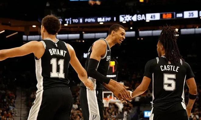 和其他球隊包括雷霆相比,馬刺的天賦更好,他們不僅有文班亞馬這個BUG級別的籃球怪獸,還有卡斯爾,哈珀,這些順位相當靠前的年輕球員,引進福克斯之后,馬刺又多了一位絕對核心,福克斯和文班亞馬的雙人組完全能夠互補,雖然福克斯作為一名大器晚成的球星,職業生涯到現在的個人榮譽并不多,但他的帶隊經驗也算很豐富了,有過季后賽履歷,在球場上具備大心臟屬性,擅長打關鍵球,很顯然他是一位實力大于名氣的球員。此外,馬刺還有瓦塞爾,凱爾登約翰遜,尚帕尼,這些擁有一定得分能力的角色球員,全隊8人場均得分都上雙。