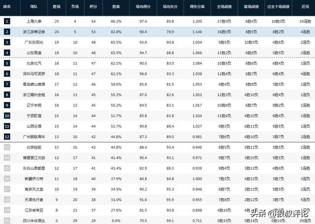 CBA最新排名:上海3殺廣東 北京再遭爆冷 遼寧換帥后戰績狂飆