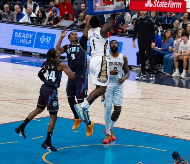 面對又高又壯的活塞內線,錫安威廉姆斯利用自己的沖擊力,依舊打出了不俗的個人表現,用21+6+2+2+1填滿了數據欄,但是隊友表現不給力,再加上罰球線上的發揮慘不忍睹,只有24投11中,讓鵜鶘只能接受輸球的結局。