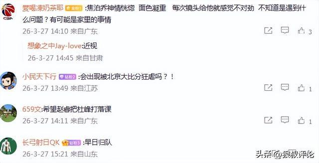 廣東男籃遭江蘇隊絕殺的比賽,焦泊喬只打了3分鐘,再也沒有登場,上一場對陣四川更是沒有進入12人名單,具體是什么原因,盡管沒有對外公布太多,但可以看到焦泊喬已經從易建聯(lián)接班人,慢慢轉變成為體型更加高大的曾繁日。