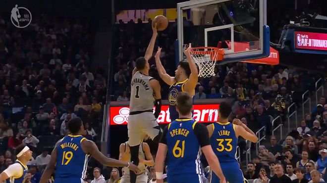 不夸張地說,文班亞馬這場真的打出了一種“大學生打小學生”的感覺,勇士開局外線防他的是比文班亞馬矮了30公分的波杰姆斯基和理查德,內線站的是比文班矮25公分的追夢格林。