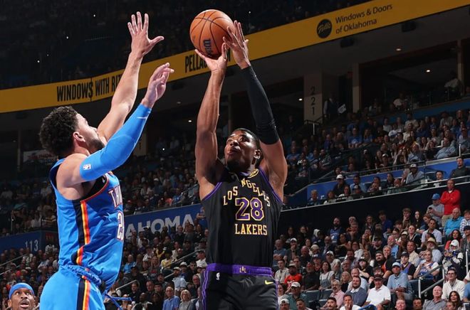 在此前的一場(chǎng)NBA常規(guī)賽中,主場(chǎng)作戰(zhàn)的俄克拉荷馬城雷霆以139比96輕松完爆了近來(lái)勢(shì)頭不錯(cuò)的洛杉磯湖人。本場(chǎng)比賽后,拿下了4連勝的雷霆的戰(zhàn)績(jī)提升到了61勝16負(fù),排名繼續(xù)穩(wěn)居西部榜首位置,與身后的圣安東尼奧馬刺的勝場(chǎng)差為兩場(chǎng);而結(jié)束了4連勝的湖人的戰(zhàn)績(jī)則是下滑到了50勝27負(fù),繼續(xù)排名西部第3位,與身前的圣安東尼奧馬刺的勝場(chǎng)差為9場(chǎng),與身后的丹佛掘金的勝場(chǎng)差為1場(chǎng)。