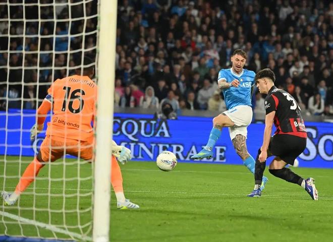 第79分鐘,那不勒斯左路進攻,阿利松·桑托斯盤帶分球,奧利維拉跟進下底傳中,門前米蘭后衛阿特卡梅解圍沒頂遠,后點波利塔諾跟進小角度破門,打進全場唯一進球。