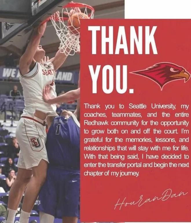 除此之外,另一位中國球員淡厚然也宣布轉校,他通過社媒寫道:“感謝西雅圖大學,我的教練們,隊友們,以及一路支持我的所有人。我感激在這里收獲的經歷、教訓和建立的友誼,將永遠伴隨我。如今我已決定啟動轉學流程,開啟人生新篇章。”